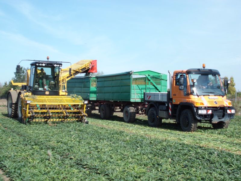 Hier nun also der vorerst letzte Schwung. Die Aufnahmen stammen von gestern und entstanden auf einem Schlag der Agrargenossenschaft Calbe / Saale in der Gemarkung Calbe. Als ich das Feld betrat um zu dem Unimog zu gehen, habe ich erst mal ein paar Blätter abgerissen und daran gerochen, da ich mir nicht erklären konnte was hier geerntet wird. Der Mog Fahrer kam sofort herausgesprungen und hat gerufen "Nicht in den Mund nehmen und wasch´dir am besten gleich die Hände !"