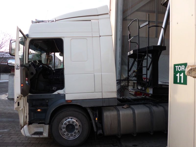Genau drei Monate nach meiner letzten Tour, hatte ich am Freitag die Gelegenheit für meinen ersten Rundlauf in diesem Jahr. Völlig allein, ohne vorausfahrenden Scout dafür mit meinem (PKW)Navi. Los ging es mit Zwiebeln zum bereits bekannten Verarbeiter nach Glauchau. Der Stammfahrer des gezeigten Zuges ist sehr sauber und fährt normalerweise ohne Schuhe. Nachdem er einen Teil des Teppichbodens entfernt hatte, durfte ich nach Rücksprache mein Schuhwerk an diesem Tag ausnahmsweise an behalten ;). Die Mutternschutzringe an der Vorderachse hat er bewusst abmontiert, um die Alufelgen besser polieren zu können, was dann im Sommer auch wirklich schmuck aussieht .