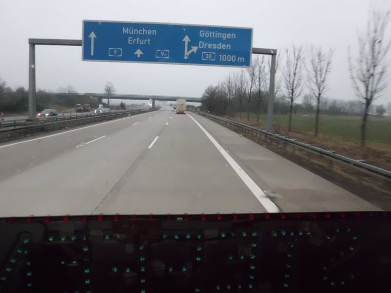 Von Zeitz ging es über die A 9 und A 38 durch das Eichsfeld und den Heidkopftunnel zur A 7. -