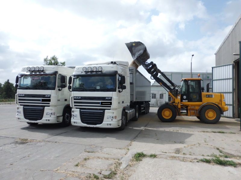 Und ohne Antwort zeigen beide gleichzeitig in unterschiedliche Richtungen :D.Endlich angekommen stand ich dann vor einer alten DDR Halle mit total verwinkelter Zufahrt. Leer vorwärts rein ging zwischen Toreinfahrt, Dachrinnen und Nebengebäude noch, drinne leer drehen auch. Aber beim Beladen bemerkte ich dann im Hallenboden verlaufende, abgedeckten Schächte für die Belüftung und mein geplanter Ausfahrtskurs schien mir plötzlich mit dem vollen Zug stark gefährdet. Die Frage beim Fahrer des Teleskopladers: "Halten die Abdeckungen und wie tief geht es darunter nach unten ?" Antwort: " Junge ich mach das hier auch erst seit kurzer Zeit aber das müsste halten."