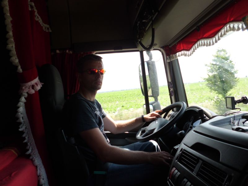 Auch am vergangenen Wochenende gab es wieder etwas zu transportieren. Los ging es bei der gleichen Genossenschaft, bei der es den vorangegangenen Samstag geendet hatte. Die erste Tour wurde draußen geladen. Dort ist mittels übersdimensionaler "Lego" Steine ein provisorischer Zwischenlagerplatz errichtet wurden. Die folgenden Züge wurden wieder aus der beschriebenen Halle befüllt. An dem Tor sind überall mahnende "Streifschüsse" erkennbar. Aber bei mir blieb glücklicherweise alles heil. Die Mittagsmahlzeit bestand dann aus einer liebevoll ;)zubereiteten Currywurst, verzehrt in der Warteschlange zwischen Plane öffnen und vorrücken .