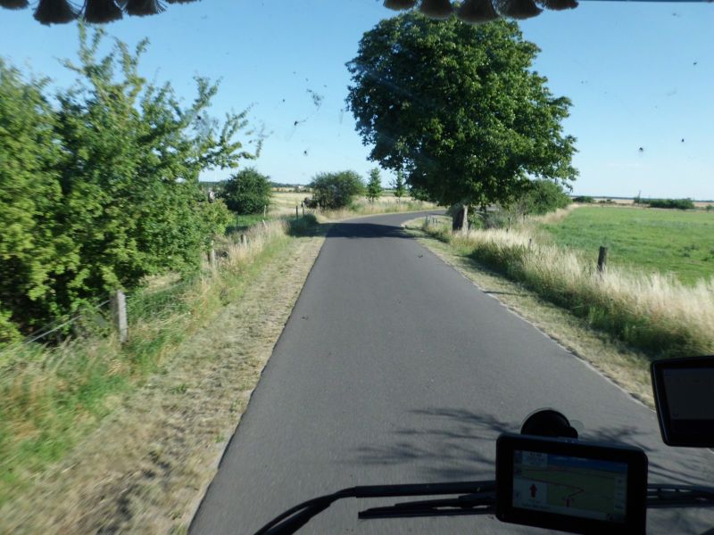 Die letzte Tour des Tages führte dann zu einer Agrargenossenschaft nach Büden. Allein die Anfahrt war schon eine kleine Herausforderung. Die Strecke war nach Bauarbeiten gesperrt. Die Umleitung führte nach Aussagen von Anwohnern "oben durch die Siedlung". Und tatsächlich war sie nur für PKW gedacht. Also irgenwie durch die Feldmark geschlagen. Erste Gabelung, zwei Navis, zwei gegenteilige Aussagen. Zweite Gebelung, zwei kleine schmurkelige Jungs (die haben mich sehr an mich als Kind erinnert), nur mit Badehose, Radhelm und BMX Rädern. Kurze Frage: "Nach Büden ???"