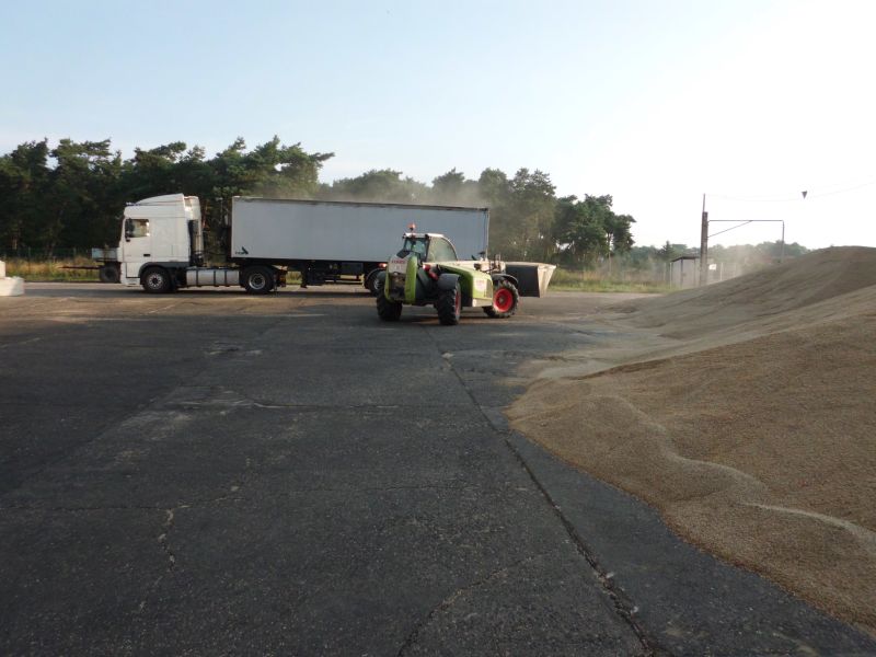 Bei den nächsten Umläufen hatte ich etwas Zeit mir die Technik des Betriebes anzusehen. Hier schien die (gute alte ?) Zeit stehen geblieben zu sein. Neben den zu sehenden Schleppern gab es noch mindestens zwei weitere ZT, die aber total eingeparkt waren. Alle Traktoren noch zugelassen, mit TÜV und recht gepflegt. Hinter dem Belarus hingt sogar noch eine intakte Kertitox Spritze , also ein klassisches Gespann . Auch das System des Hängers hinter dem 7810 schien schon älter, jedenfalls kannte ich es bisher nicht. Der Kippvorgang wurde von außen am Hänger ausgelöst / gesteuert. Eventuell sogar pneumatisch .