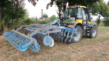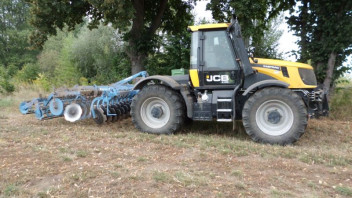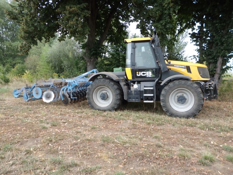 02.09.2013, ein Landwirt aus dem Ohrekreis pausiert beim Grubbern des Vorgewendes seines Erdbeerfeldes direkt an der B1. Mit dabei JCB Fastrac 2155 und Lemken Rubin.
