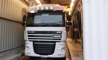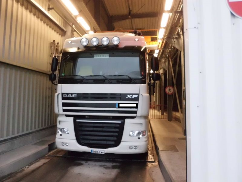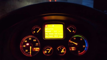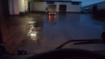 Der Stammfahrer des heutigen Zuges hatte übrigens vergessen den Trailer über Nacht anzukippen, und ist beim Eis entfernen von der Leiter gefallen (gute Besserung von hier ;)). Für mich war es das erste Mal mit dieser Zugmaschine. Von außen sah sie aus wie alle anderen. Umso erstaunter war ich, als ich den kommplett mit weißen Leder abgesteppten Innenraum sah. OK, dann also heute ohne Schuhe..............................................................