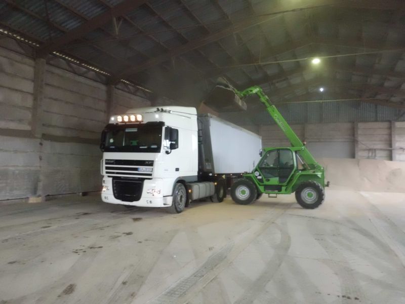 Als Rückladung gab es dann bei einer wenige Kilometer entfernten Agrargenossenschaft Weizen. Dort setzte man bei Transport- und Bodenbearbeitungstechnik noch ganz auf bewährte Ostware. Und auch ein alter T 174 II stand noch einsatzbereit in der Ecke (falls der Merlo im entscheidenden Moment mal schlapp macht ).