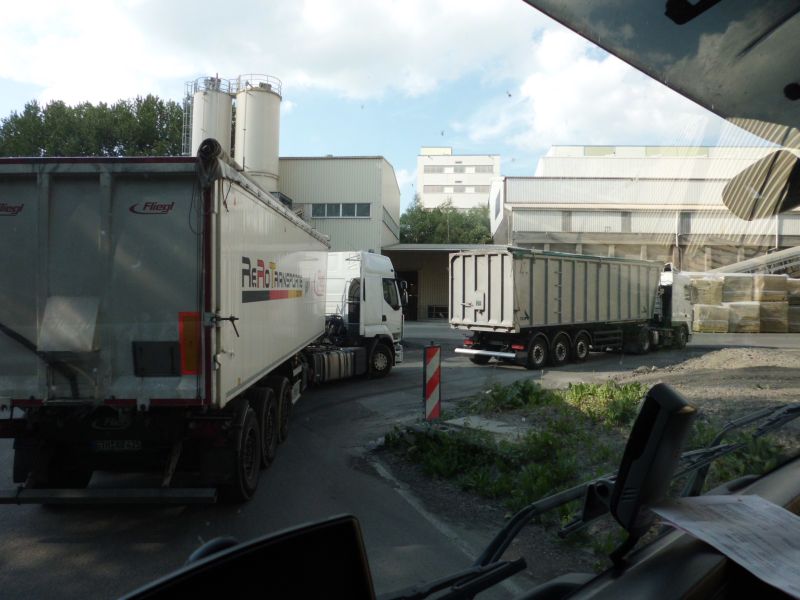 Die Steine waren für ein Dämmstoffwerk in der Nähe von Hohenstein-Ernstthal bestimmt. Dort war alles super organisiert. Es gab für jeden angelieferten Grunddstoff zeitlich festgelegte Entladefenster. Und so kippten wir vier Steinlieferanten pünktlich zwischen 17 und 18 Uhr ohne Probleme. Und für alle die nur Getreideannahmen kennen. Das hier war mal ne richtig Gosse, kein Spielkram :D.