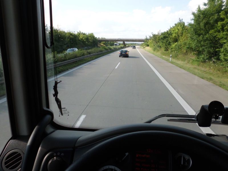 Und da ich heute wieder meiner richtigen Arbeit nachgehen musste und es schon recht spät war, musste ich nach dem Kippen leer, ohne Rückladung zum Firmensitz zurück aufbrechen. Die gesetzliche Pause verbrachte ich dann auf einem Parkplatz an der A 14, bei einem Tee, zu Gast bei einem richtigen