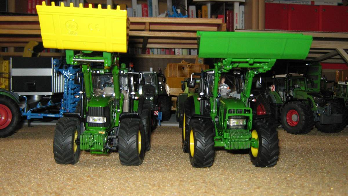 Er hat im Gegensatz zum Serienmodell vorne Anbaugewichte erhalten und der Heckklotz wurde mit einer schweren Kette ,,aufgerüstet,, für die bevorstehende Maisernte.