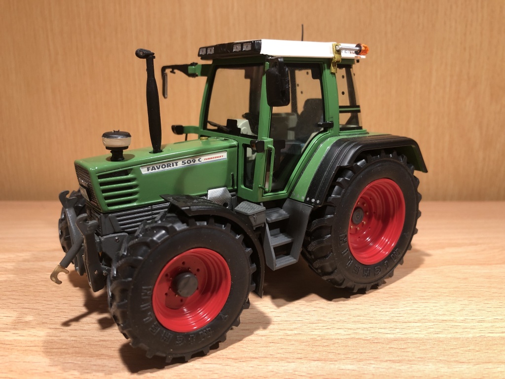 Also, geliefert wird der 509C in der typischen Weise-Toys Verpackung, mit dabei ist, wie üblich, ein Accord-Dreieck, ein Fendt-Frontgewicht und ein Weise-Toys-Plastikaufsteller für die Vitrine o.Ä.