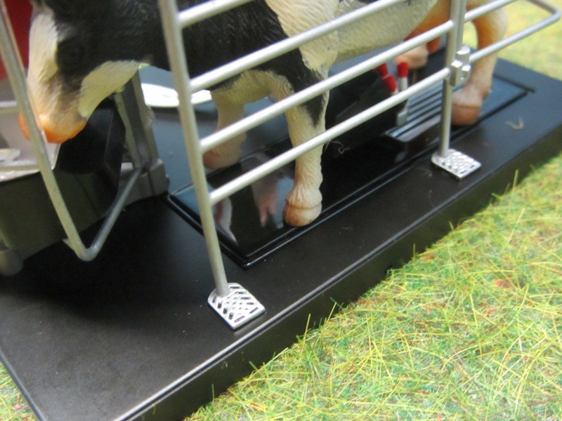 Der Melkroboter ist auch einer Grundplatte angebracht, die wiederum auf einer weiteren Präsentationsplatte mit Rahmen per 4 Schrauben befestigt ist.