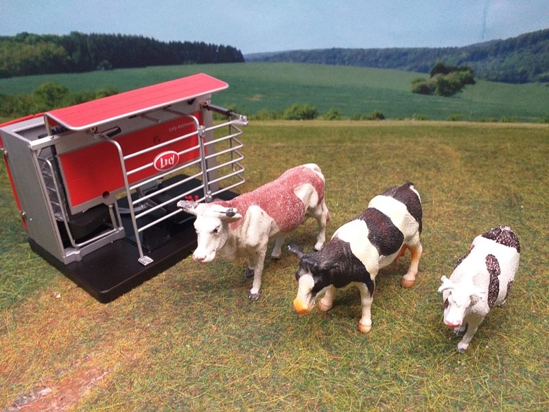 • Wie Ulli schon in seinem Sammlungs-Thread %22https://https://www.agrarmodellbau.de/forum/modellba…5#post965108%22">>hier gezeigt hat, passt die kleinere Kuh von Britains besser in den Melkautomaten: da sitzt dann das Melkgeschirr an der richtigen Stelle.