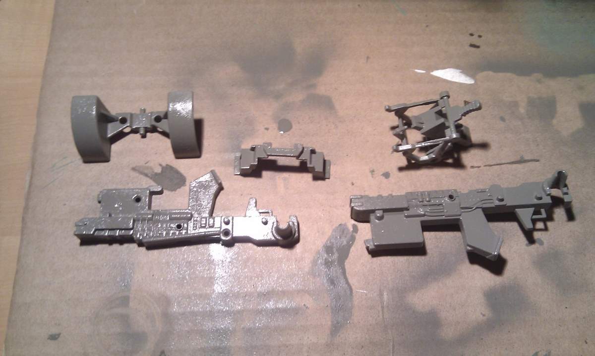 Nachdem ch den Fendt gestern auseinander gebaut hatte und die Teile heute morgen gestrahlt habe, habe ich nun die Teile vom Fahrgestell und die Kupplung lackiert! Ich hoffe ich habe mit dem Grau das Fendt Grau getroffen!