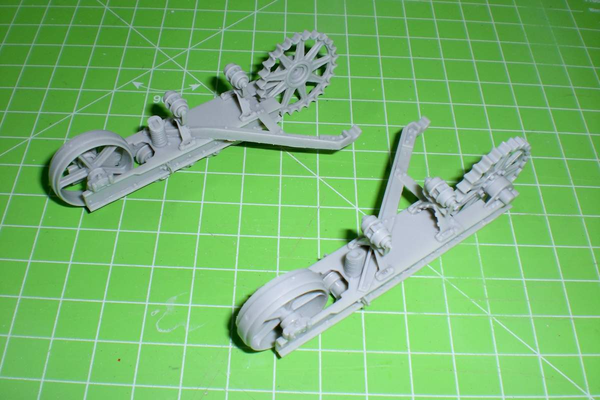 Dann wurden die Gleisketten zusammengesetzt. 192 Teile vom Gussast abtrennen, versäubern und verkleben. War nach zwei Nachmittagen geschafft: