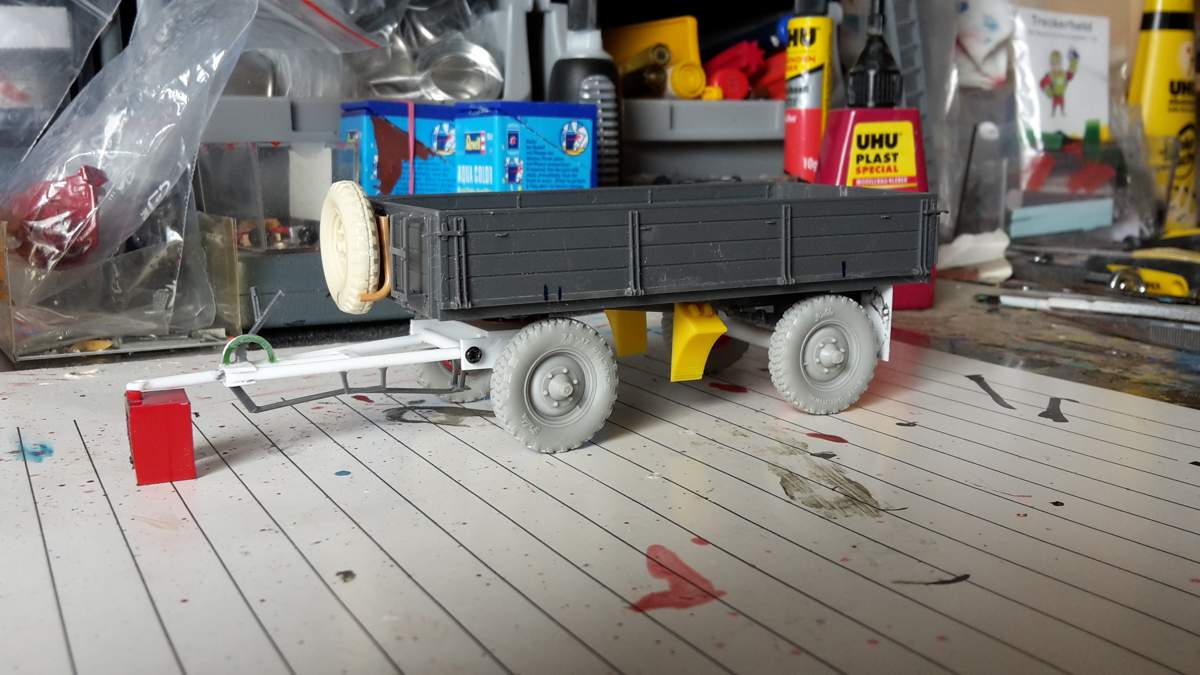 Die Pritsche stammt von einem 1:35er LKW von Tamiya. Räder aus Resin von einer 1:35er Krupp Protze.