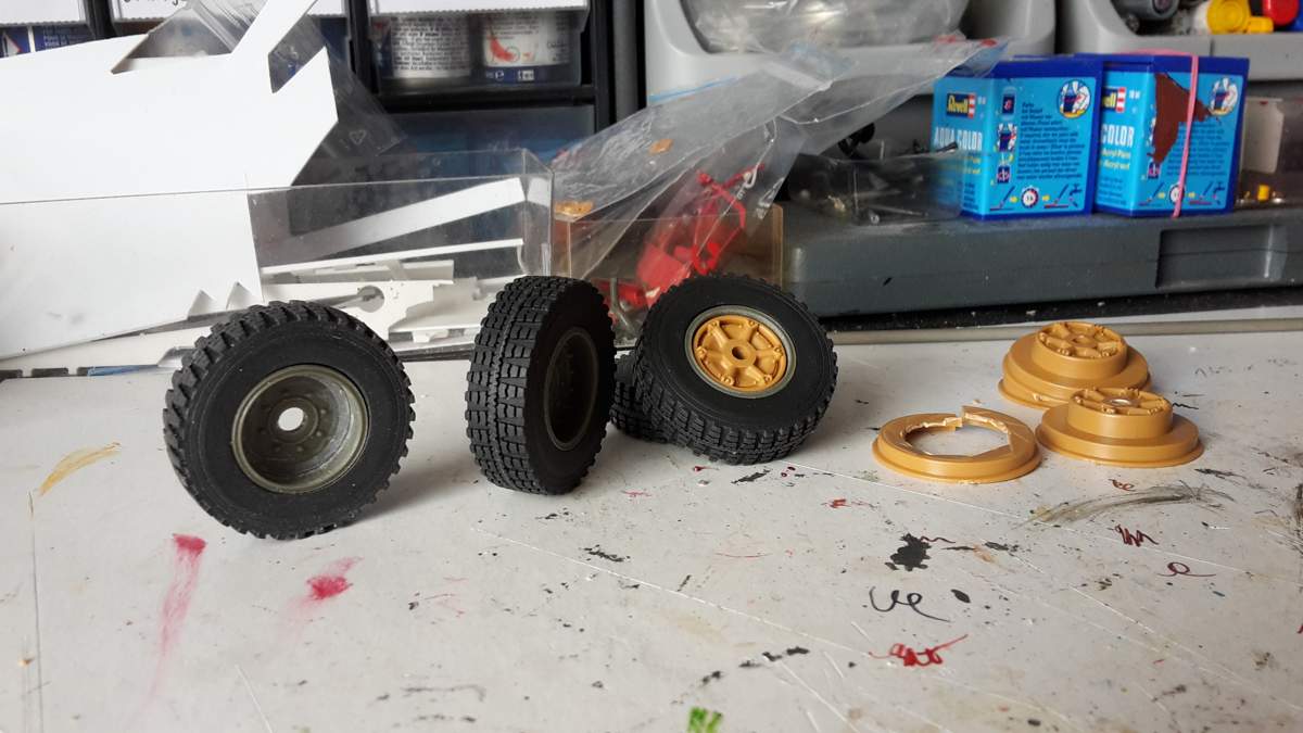 Die Pritsche stammt von einem 1:35er LKW von Tamiya. Räder aus Resin von einer 1:35er Krupp Protze.