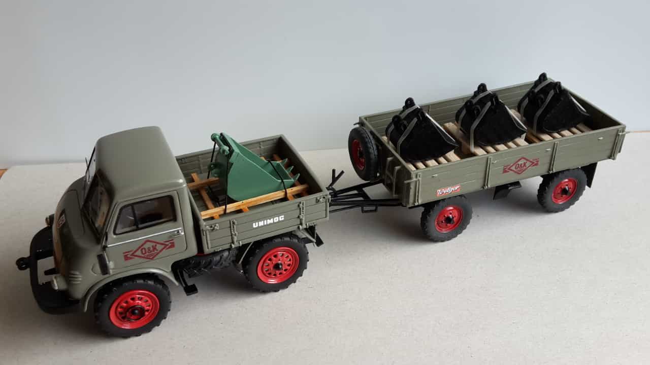 Unimog als Auslieferungsfahrzeug für Baggerlöffel von O&K, gefällt mir super.