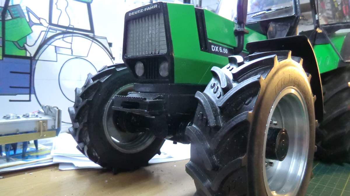 Der Deutz hat 600/65/r38 Bereifung bekommen, Mir standen aber nur 34er zur Verfügung.