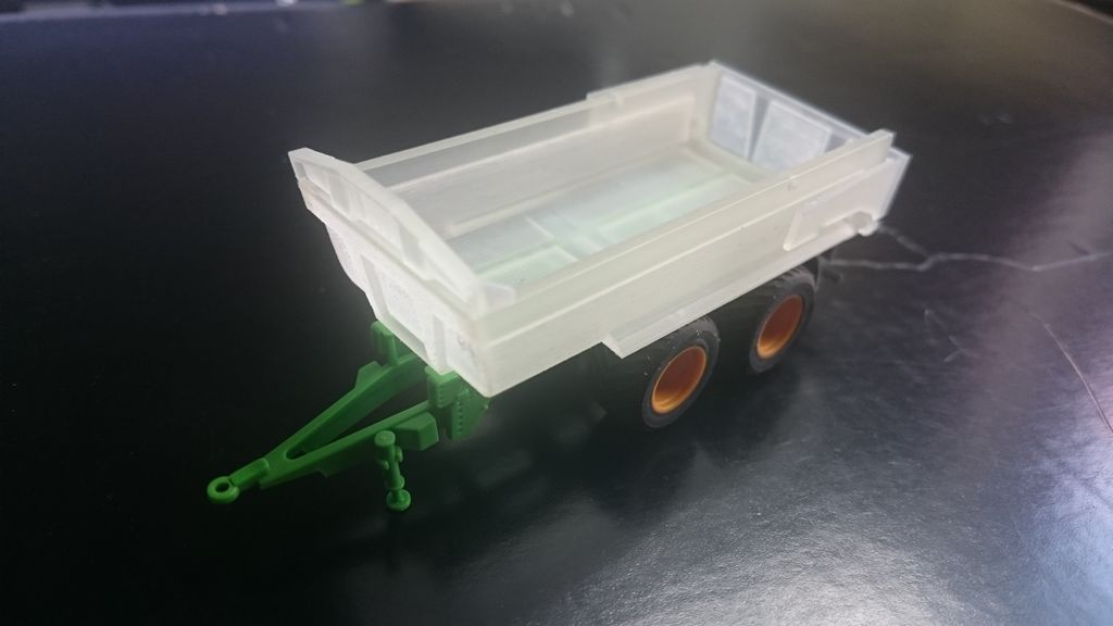 Ich benutze mittlerweile beides. PLA für große Teile: Tank vom Gülle Fass; Resin für die Details Leitern, Federzinken usw.