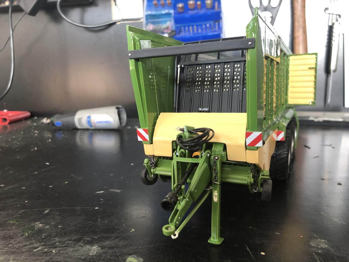 Dann fing ich mit dem Fahrwerk an , was natürlich in alle Richtungen Funktionieren musste , da ich die Keilform so klasse finde , wenn der wagen vorne abgesenkt wird , um das erntegut besser aufnehmen zu können .