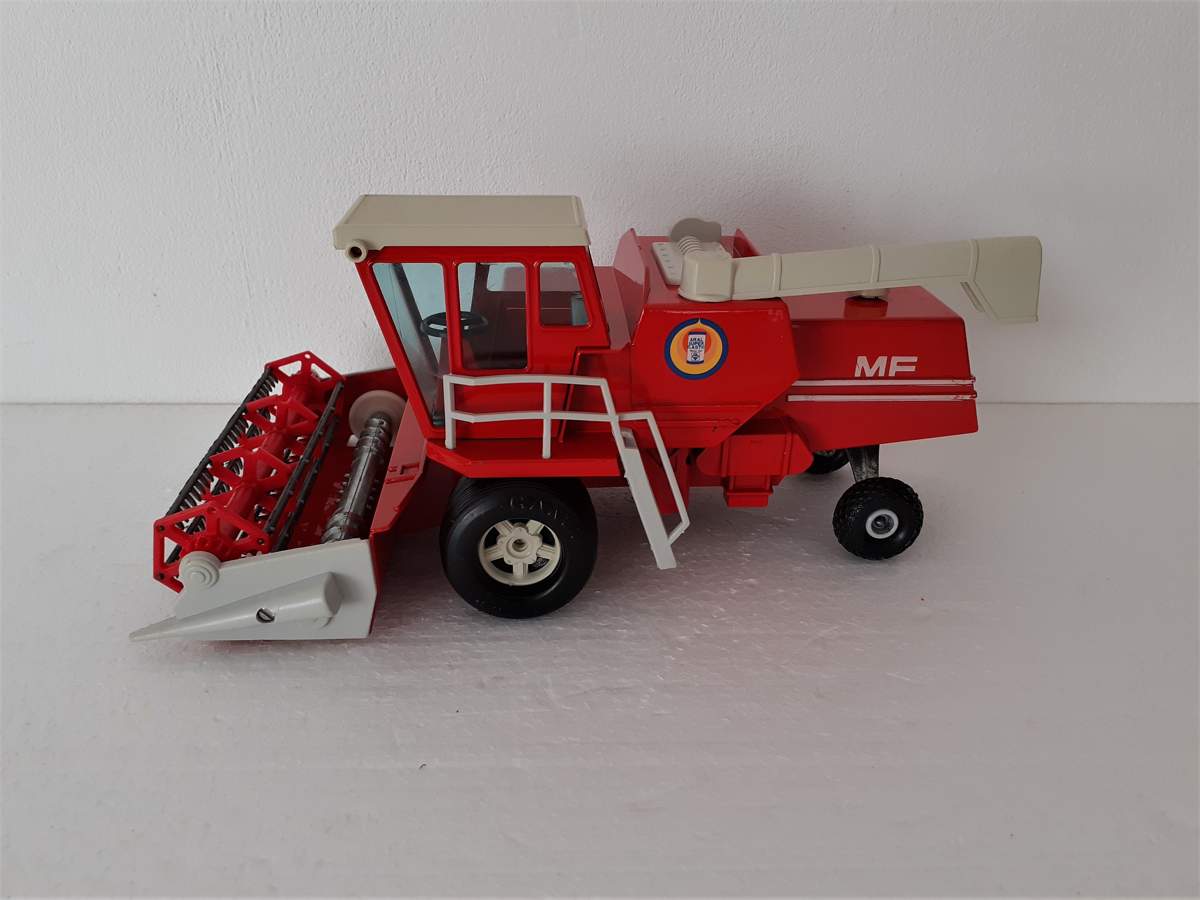 Habe in einem GAMA Katalog von 1977 die Abbildung eines Dominator 105 im großen Maßstab 1:29 gefunden. Laut Beschreibung ist er 36 cm lang und sollte eine Neuheit von 1977 sein. Das Modell hat die Reifen und das Schneidwerk vom obigen MF in 1:29. Sieht dem 1:50 Modell sehr ähnlich, das Dach der Kabine ähnelt dem des MF und ist auch klappbar.
