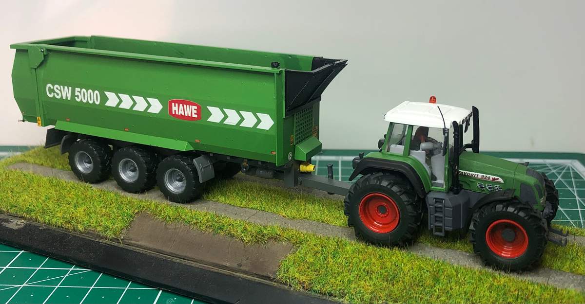 danke für die Kommentare. Fast fertig der Hawe CSW 5000, 3D-Modell von Sebastian, es fehlen nur noch Kleinigkeiten. Hydraulikschläuche, Zapfwelle, Bremsklötze..... Der Farbton gefällt mir nicht so 100% für die neuen Hawe, aber nun gut. Die Decals habe ich selbst gemacht. Die Reifen stammen von Trino und die Kotflügel von nem Wiking Joskin Streuer. Das Heck unter der Heckklappe habe ich auch selbst angepasst. Cooles 3D-Modell wie ich finde und echt unkompliziert zu bauen.