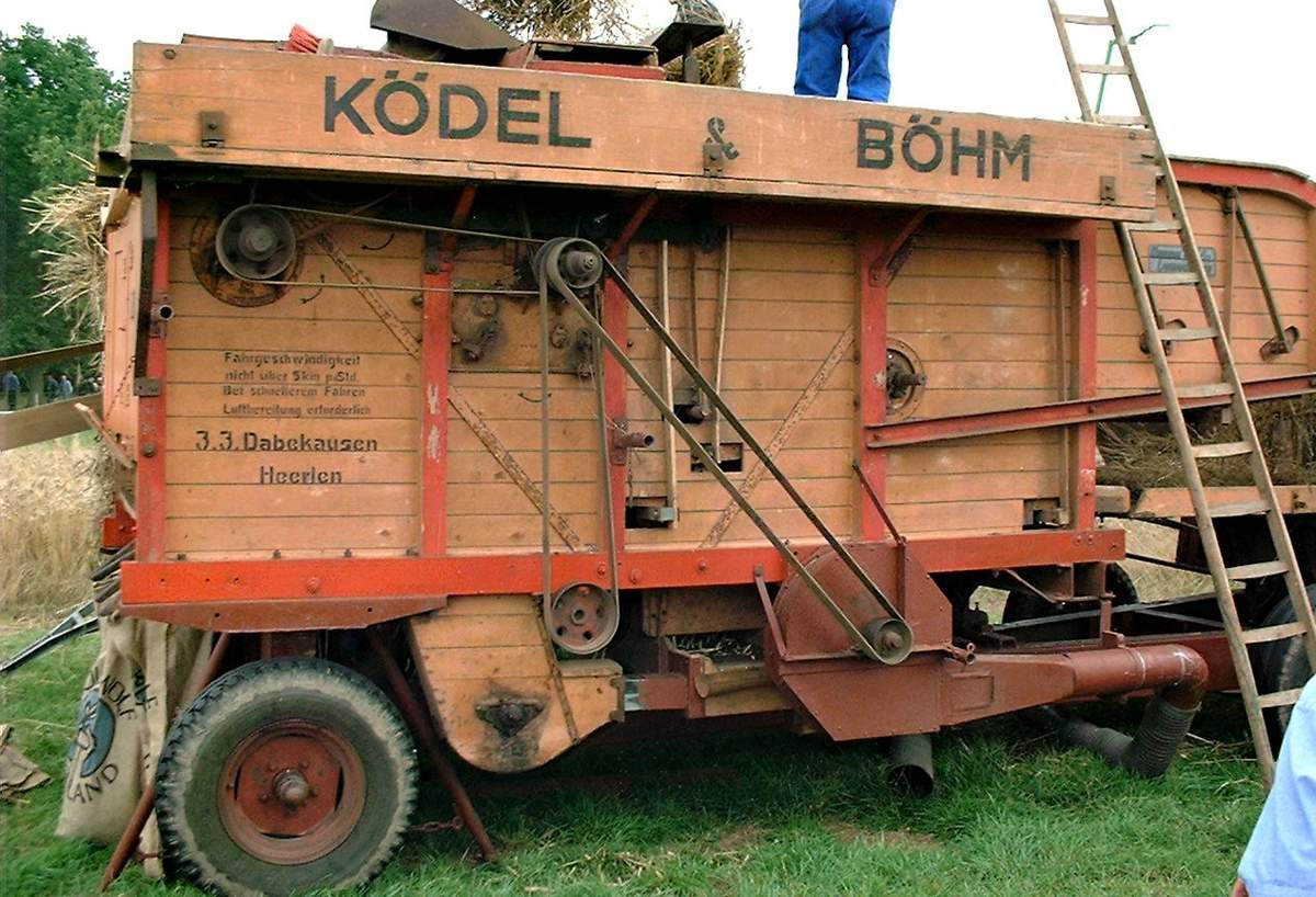 Da ich mir ja nun eine Dreschmaschiene (1:32 Modelle in Aktion ,siehe ein Alter Traum ) zugelegt habe suche ich bider vom Originalvorbild der Ködel und Böhm Typ ? Wer kennt diese Maschine den Typ im Original und hat Bilder oder alte Prospekte, um das Model Originalgeteuer zumachen. Irgend etwas fehlt am dem Modell