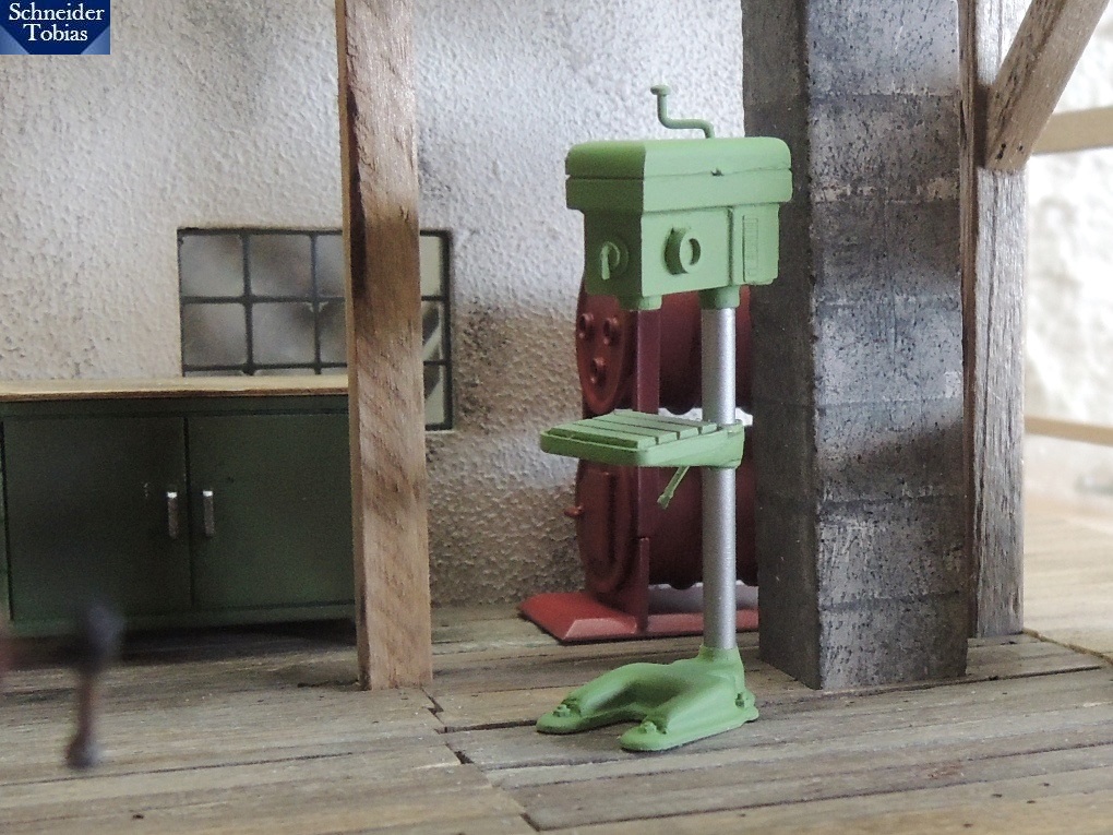 Ich habe den Bausatz mit ein paar Details ergänzt - z. B. Bohrer, Vorschubhebel, Bodenplatte. Es folgen natürlich auch farbliche Absetzungen sowie eine Alterung.