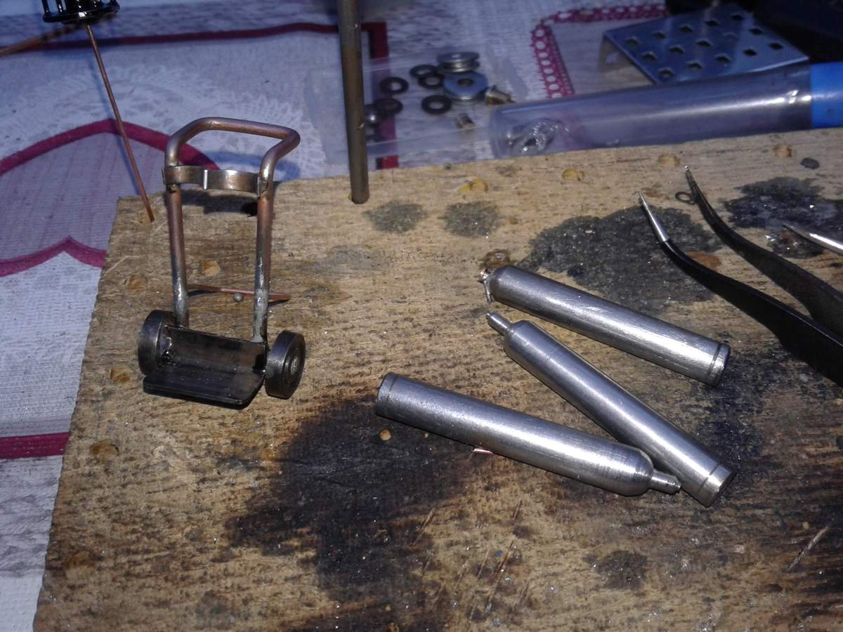Dieses habe ich dann aus Alu Profilresten und Unterlegscheiben gebaut. Modellgewicht: Träger 20g + 3g je Scheibe - müsste in Real ca. 655 kg + 98,3 kg sein, also voll bestückt um 2.400 kg