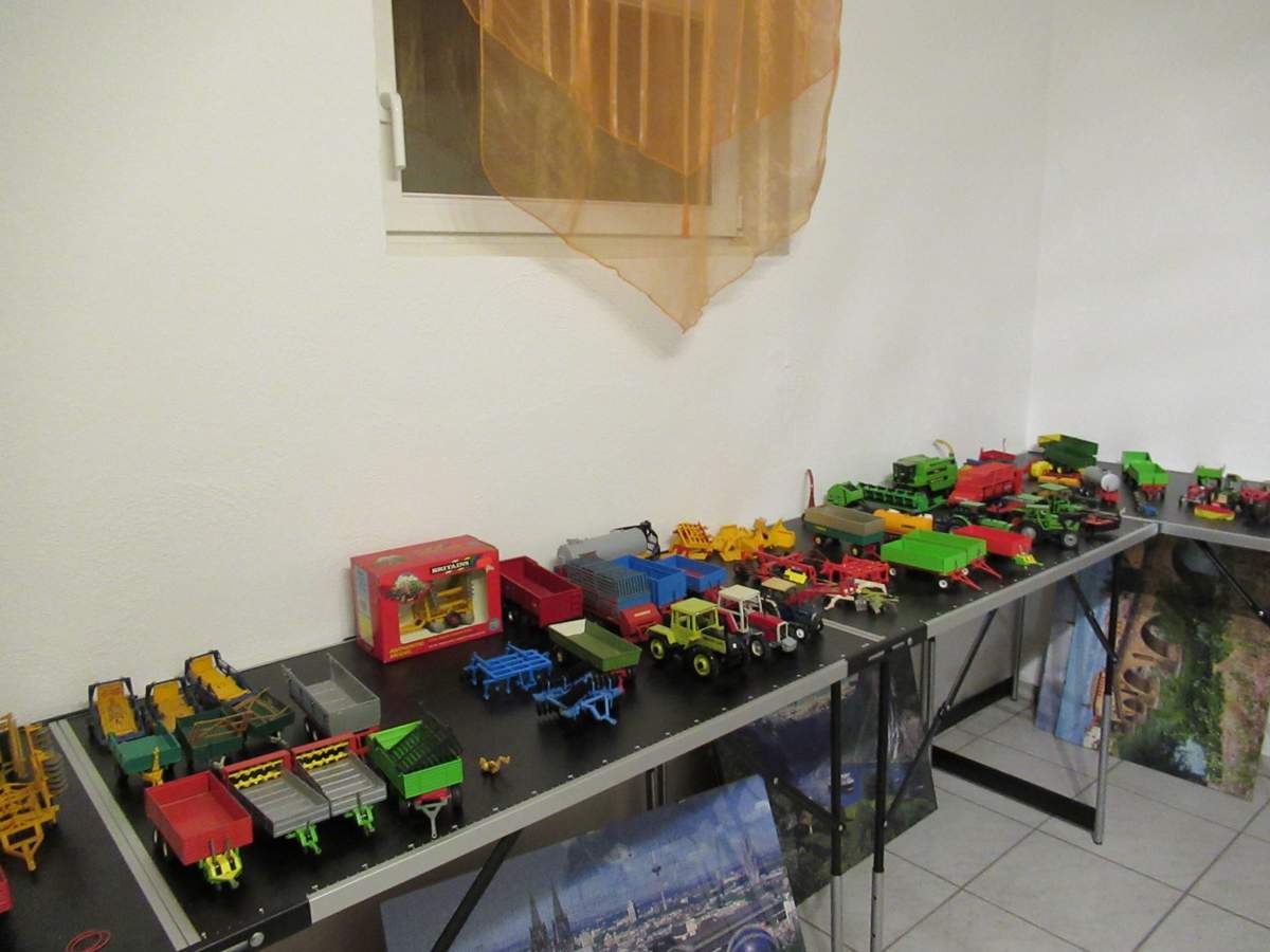 - Fendt Farmer 5 S (aus Britains Ford 5000) mit Peko-Verdeck und Fronthydraulik (gabs auf Wunsch ab Werk), Pöttinger Frontmähwerk (Eigenbau) und Pöttinger Erntewagen I (Britains)