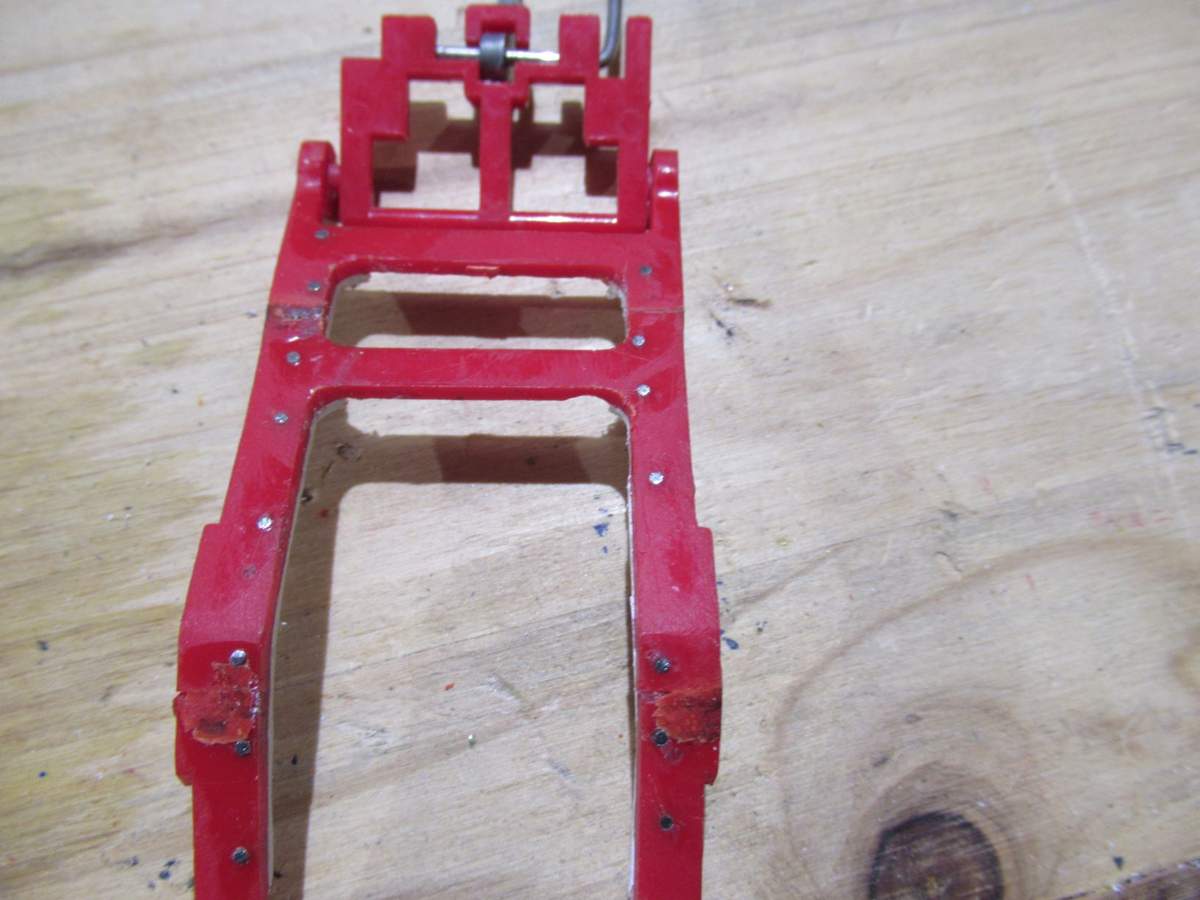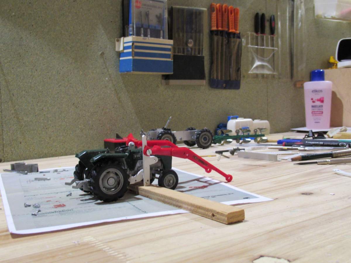 und bekommt einen Frontlader. Hier wird gerade die Konsole angepasst, die Schwinge muß auch noch gekürtzt werden