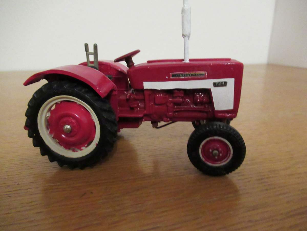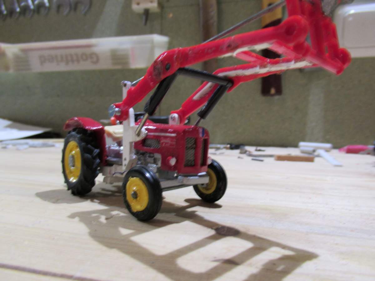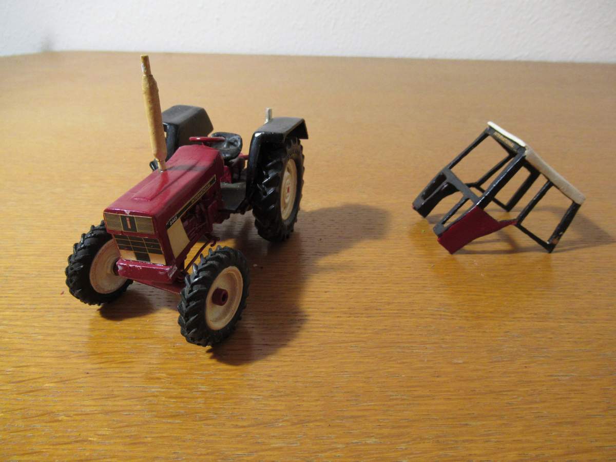 - IHC 844 S (aus Britains Ford 6600) mit Frontlader und Fronthydraulik (gabs auf Wunsch ab Werk seit mind. 1976), PZ Frontmähwerk (Umbau Britains) und Melgele LAW 400 (Siku umlackiert)