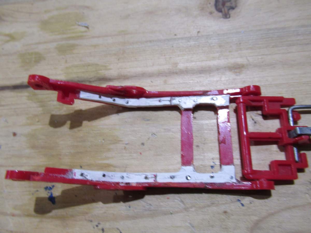 und bekommt einen Frontlader. Hier wird gerade die Konsole angepasst, die Schwinge muß auch noch gekürtzt werden