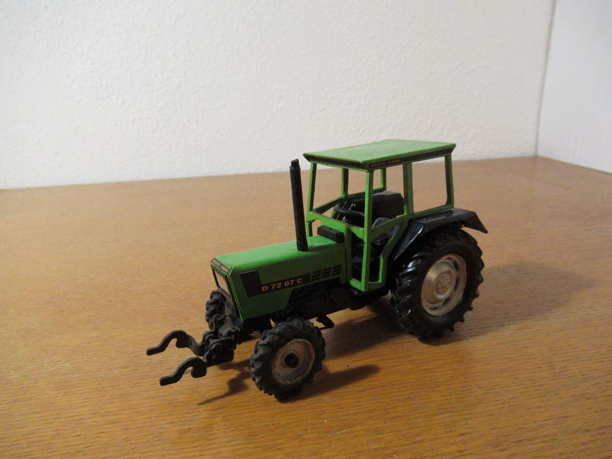 - Deutz D 7207 (aus Britains MF 595) mit Fronthydraulik (gabs auf Wunsch ab Werk), Deutz-Fahr Frontmähwerk (Siku) und Deutz-Fahr E 570 (Siku)