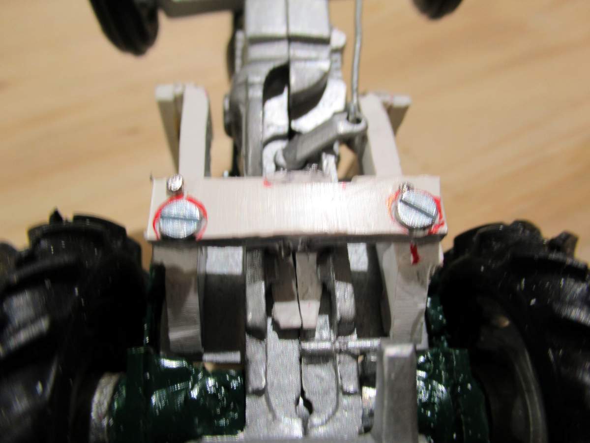 und bekommt einen Frontlader. Hier wird gerade die Konsole angepasst, die Schwinge muß auch noch gekürtzt werden