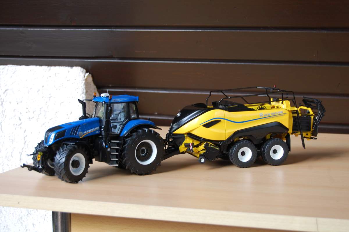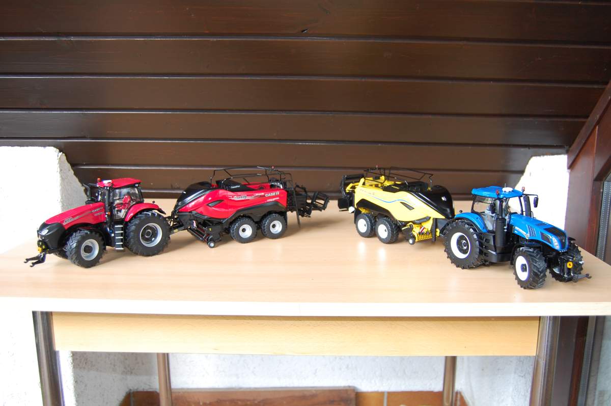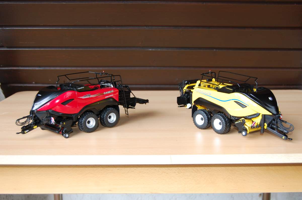 ich habe mir beide gegönnt (Case und NH), um meine beiden MM-Traktoren (Case Magnum 400 und NH T8.435) davorzuspannen (Bilder ganz oben). Die Anhängevorrichtung der Traktoren ist 1. zu hoch und 2. zu klein, um die Pressen anzuhängen. Zugpendel/Untenanhängung ist bei beiden Traktoren nicht vorhanden; d.h. selbst nachrüsten.