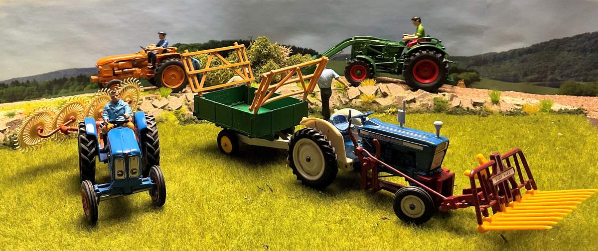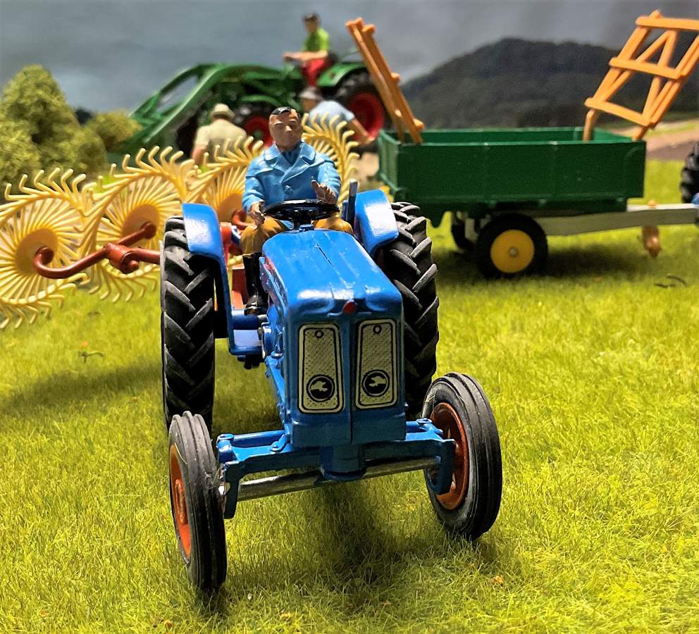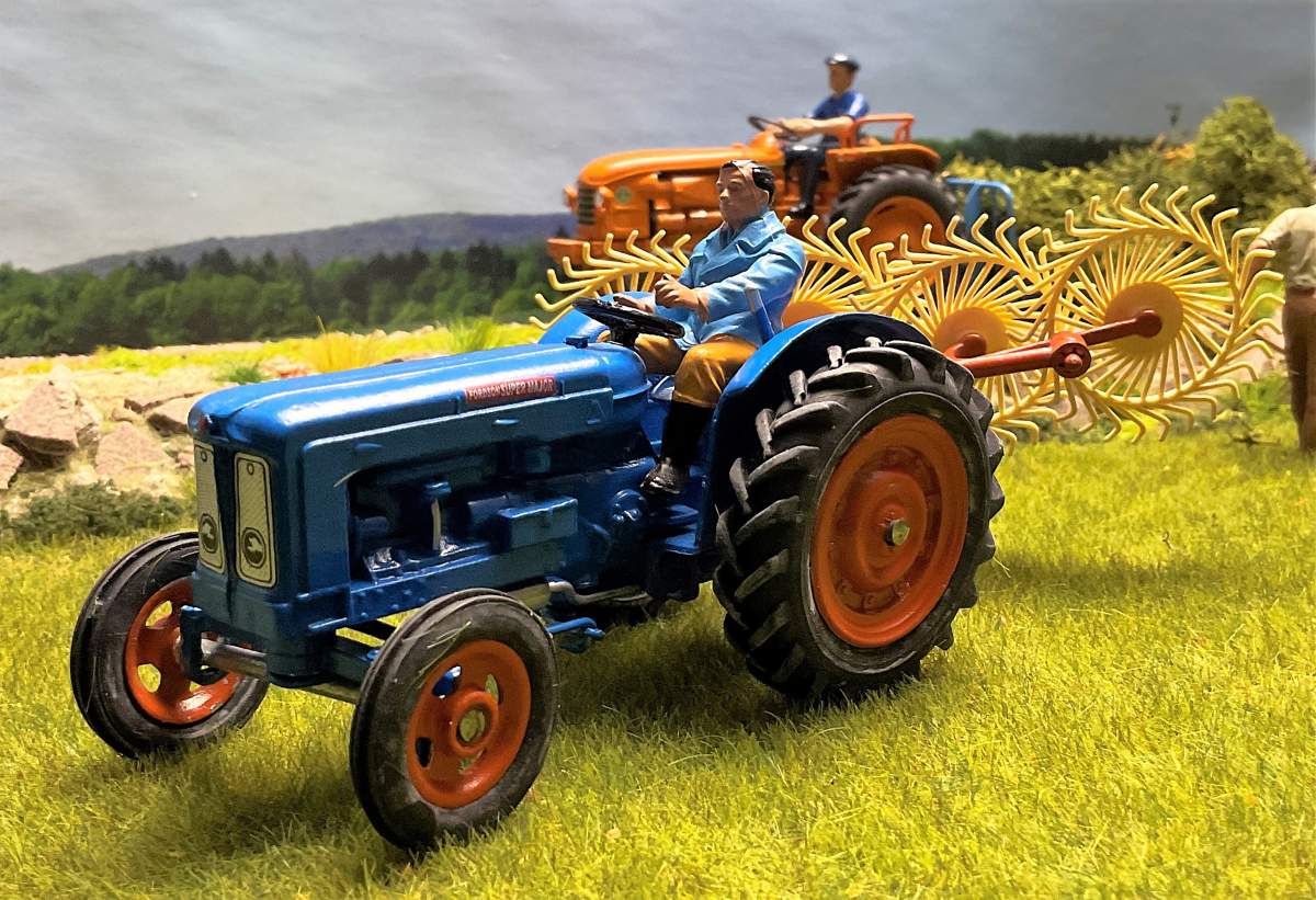schönes guterhaltenes Modell. Ist das ein original-Britains Fahrer ? Ich habe zwei ziemlich ramponierte Fordson Major. Einer mit Eisenbereifung, der andere hat die Standart-Britains Felgen und Reifen. Dieser hat mir unbekannte Vorderreifen/ Felgen ? Kommt die von Britains ? In meiner Kindheit hatten einige Bauern ( die Großbauern ) den Major. Der Dexta war öfter anzutreffen. Anfang / Mitte der 69er Jahre habe ich mit Matchbox und Corgi Fordson gespielt, Britains Traktoren/ Geräte waren bei mir in den Spielzeug-,Schreibwarengeschäften nicht im Sortiment.