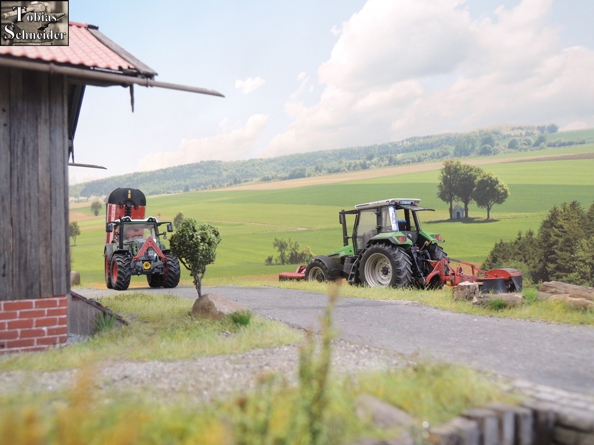 Opa war sehr glücklich über sein großes Mähgespann und freute sich über die "knapp" vier Meter Arbeitsbreite. Der Deutz spielte sich natürlich mit den Mähwerken und Opa war froh, dass er auch die Feldränder großflächig umfahren konnte.
