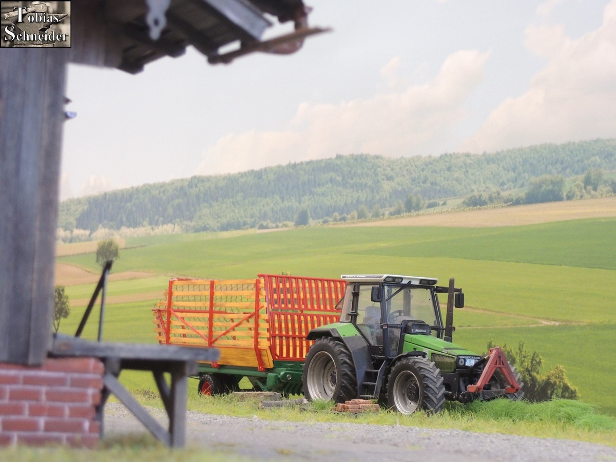 Kurze Zeit später rückte Opa mit dem großen Deutz und dem Steyr Ladewagen an.
