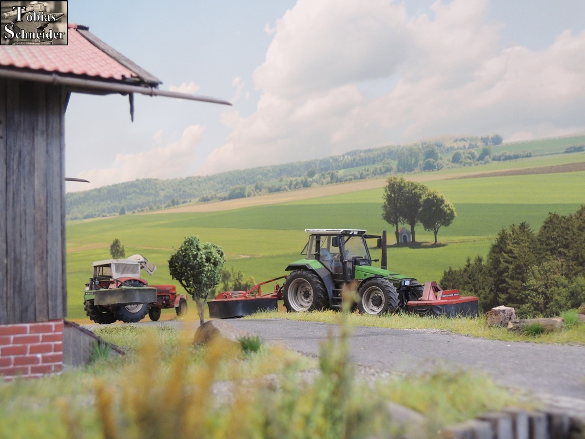 Opa war sehr glücklich über sein großes Mähgespann und freute sich über die "knapp" vier Meter Arbeitsbreite. Der Deutz spielte sich natürlich mit den Mähwerken und Opa war froh, dass er auch die Feldränder großflächig umfahren konnte.