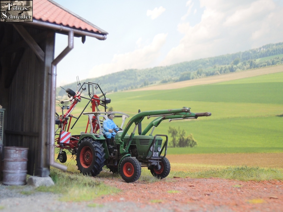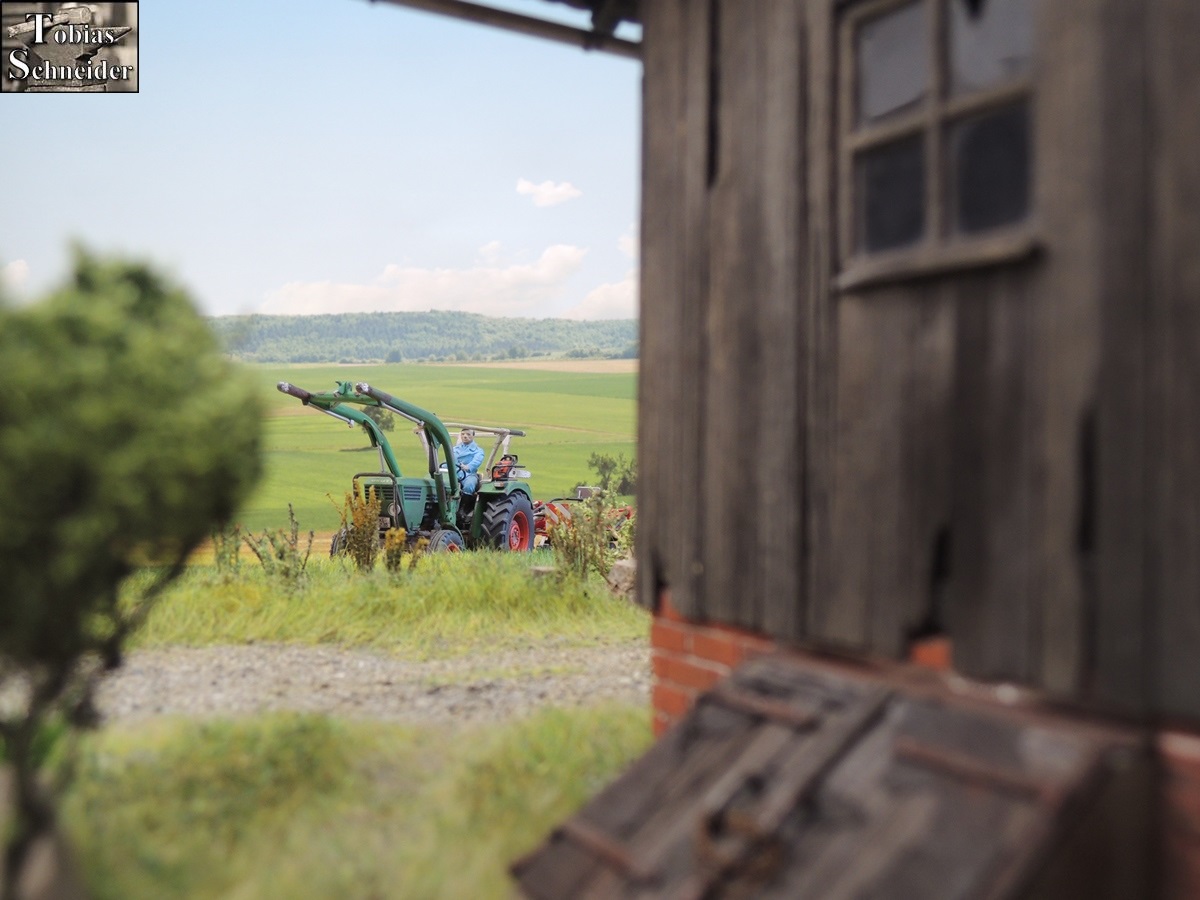 Als Sepp am Stadel angekommen war, fuhr er zuerst in den hinteren Bereich, um mit der Wiese am Bach zu starten.