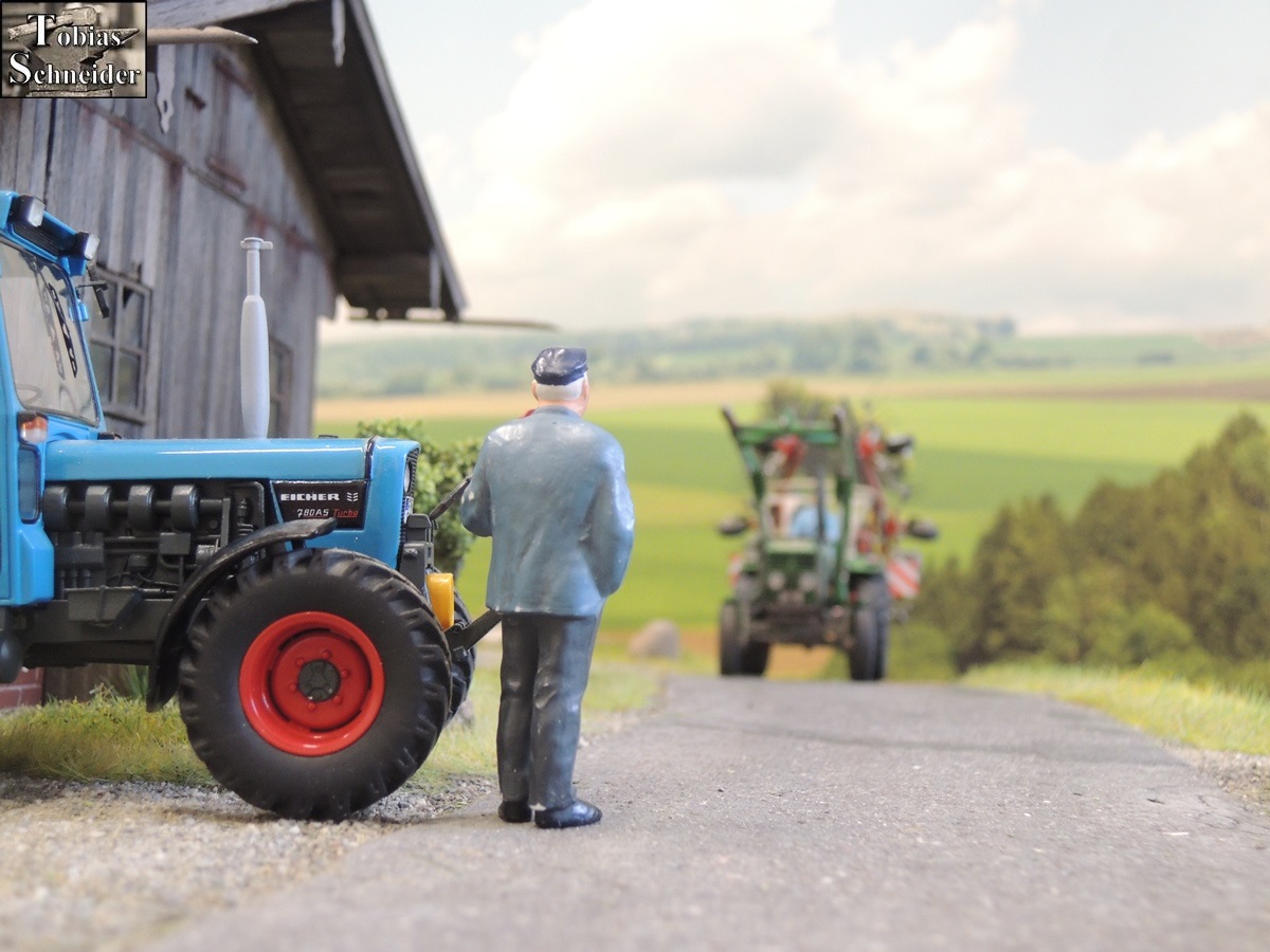 Sepp hielt ebenfalls mit dem Güldner an. "Da blockiert der alte Herr die ganze Straße... Hoffentlich klebst du dich jetzt ned an der Straße oder am Mähwerk fest. Hihihi!", scherzte Sepp mit lauter Stimme in Opas Richtung.