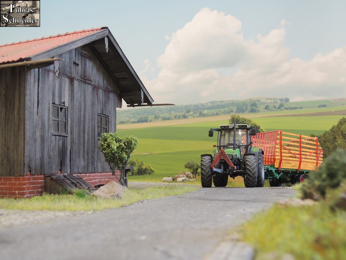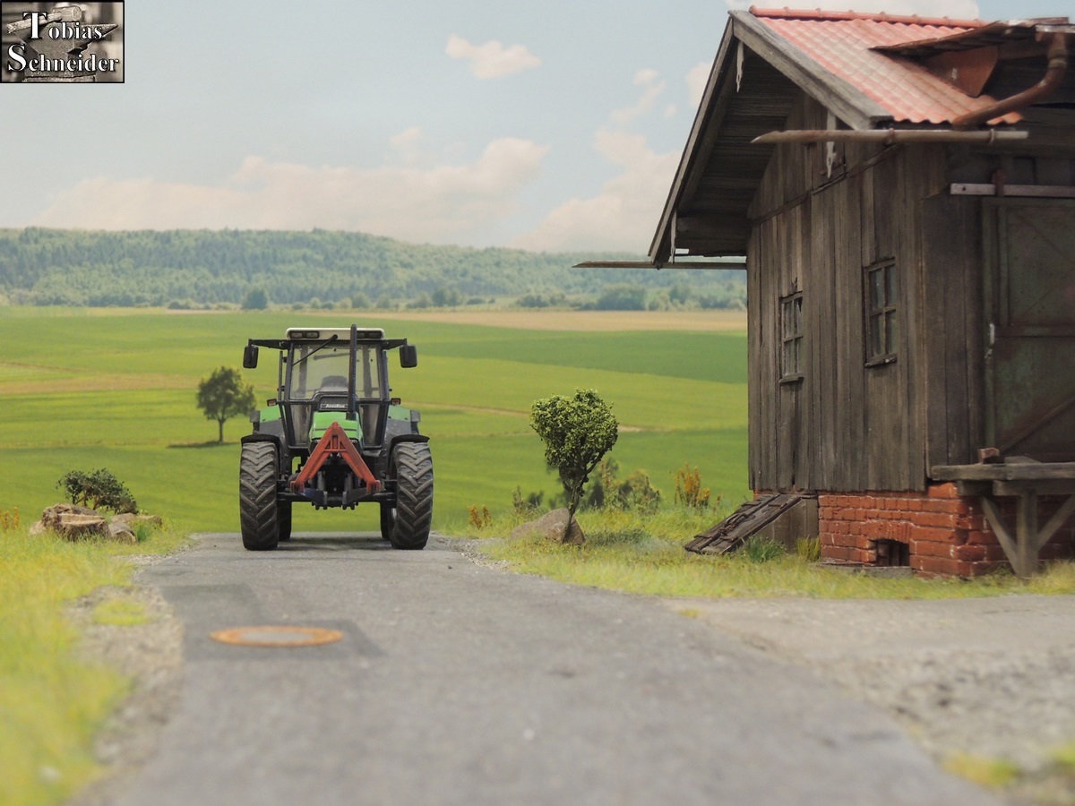 Inzwischen war auch Opa fast am alten Stadel angekommen. Mit großer Vorfreude brauste Opa mit dem Deutz über die enge Straße.