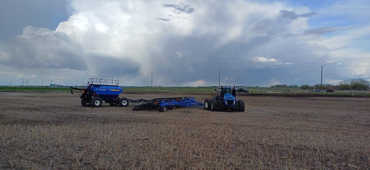 Auf dem Weg dahin fand ich einen New Holland beim säen.