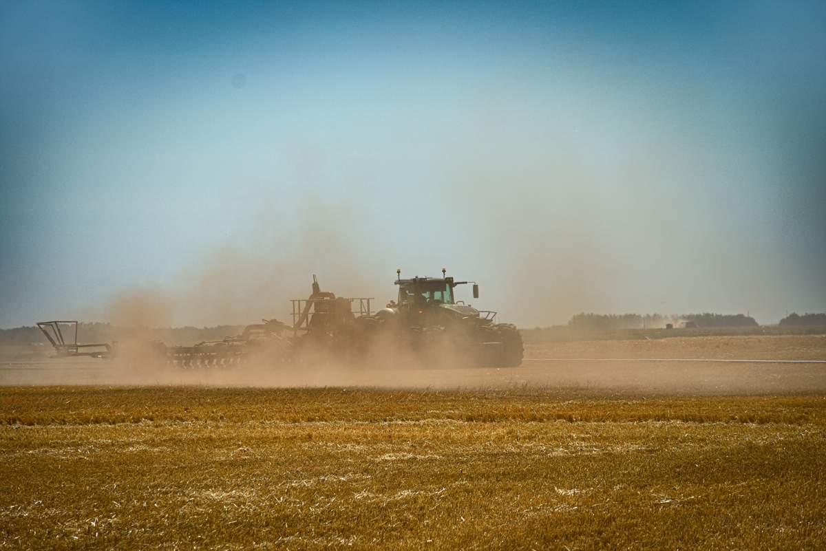 Auf dem Weg zu dem obengenannten Betrieb entdeckte ich in der Nähe von Stettler eine Hutterer Kolonnie und da wurde gerade Gülle ausgebracht.