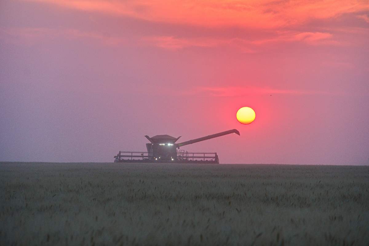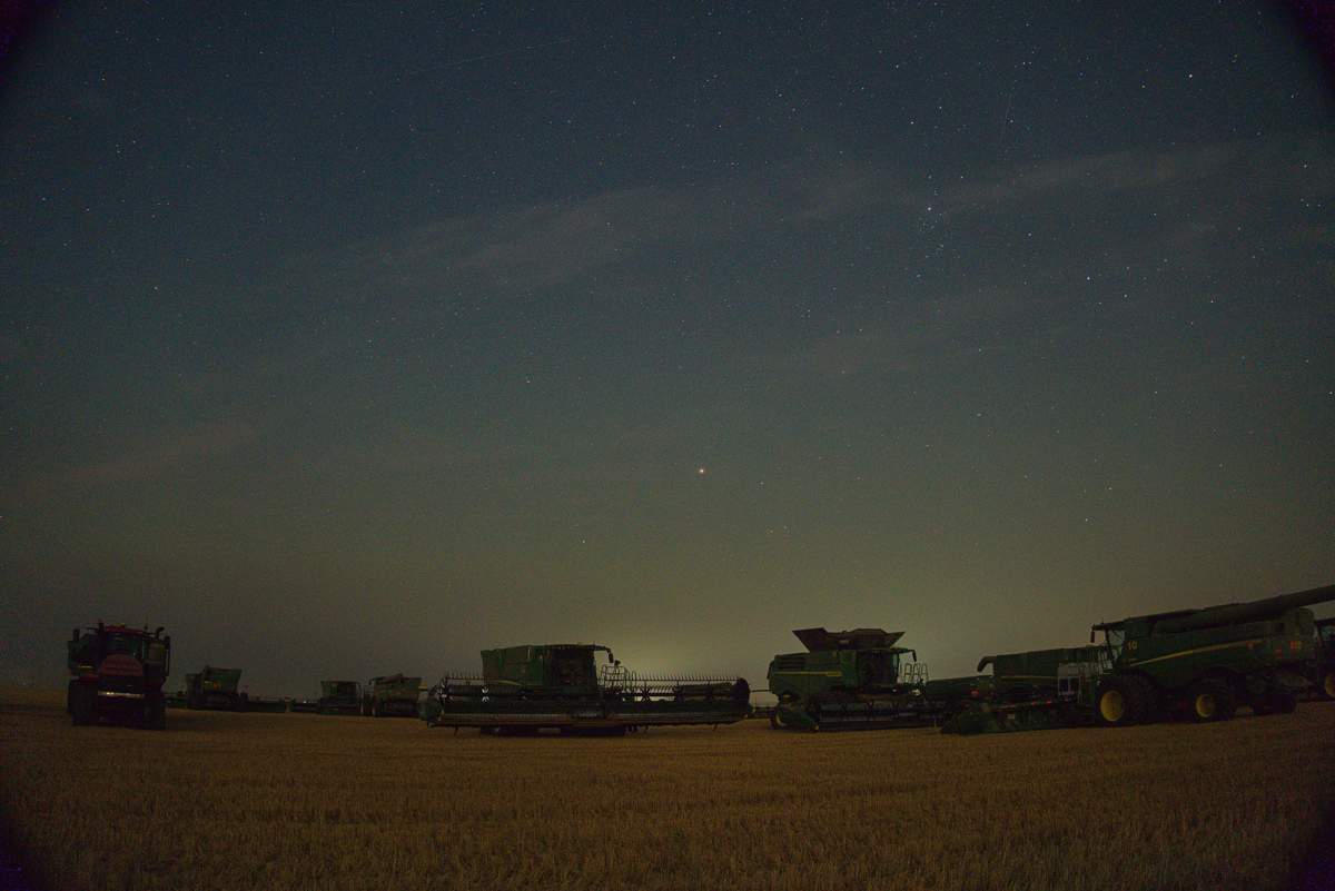 Der Sonnenuntergang machte das ganze irgendwie irrational. Das riesige Feld wurde mit einer enormen Geschwindigkeit abgeerntet.