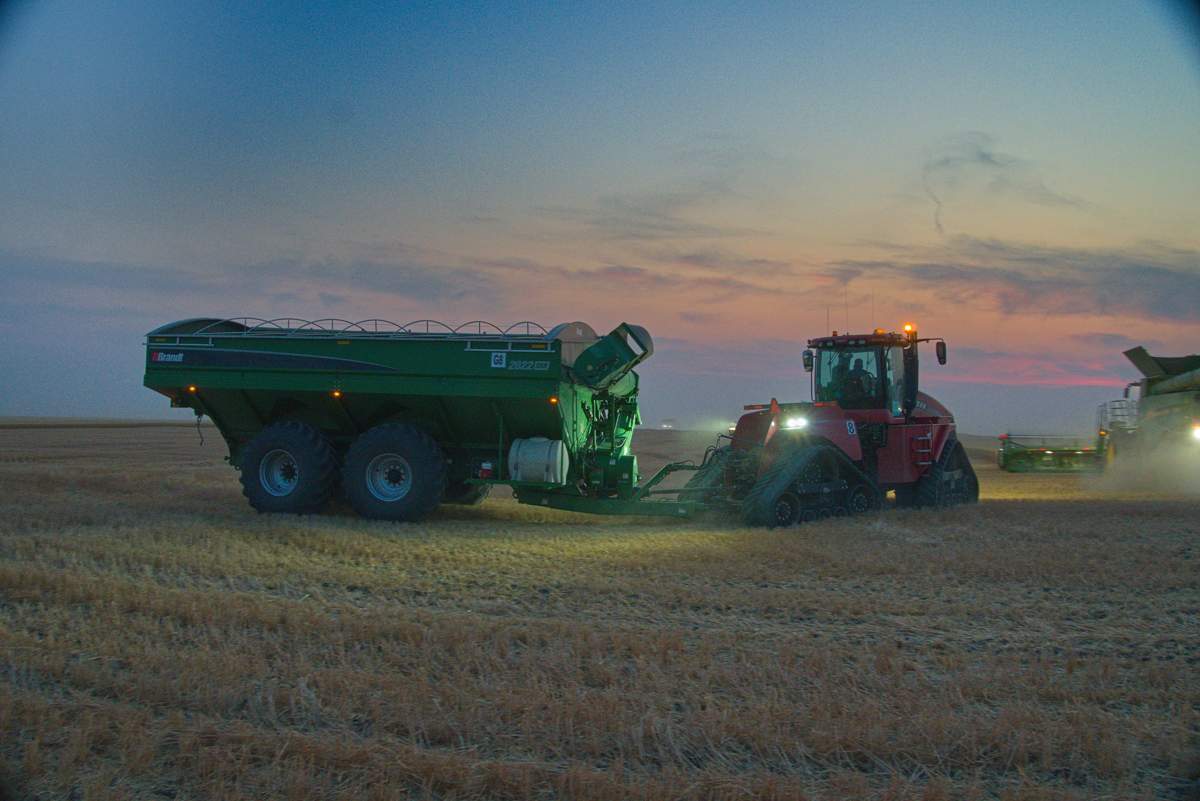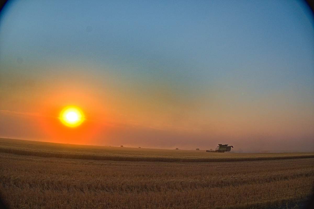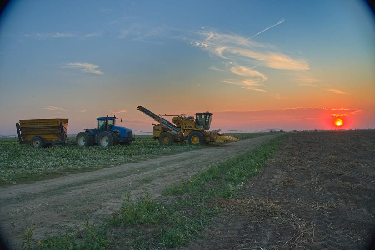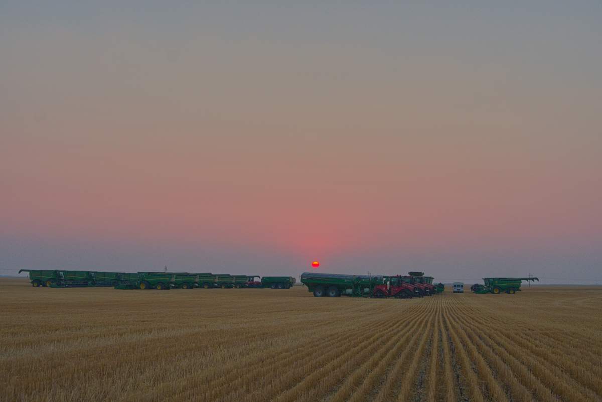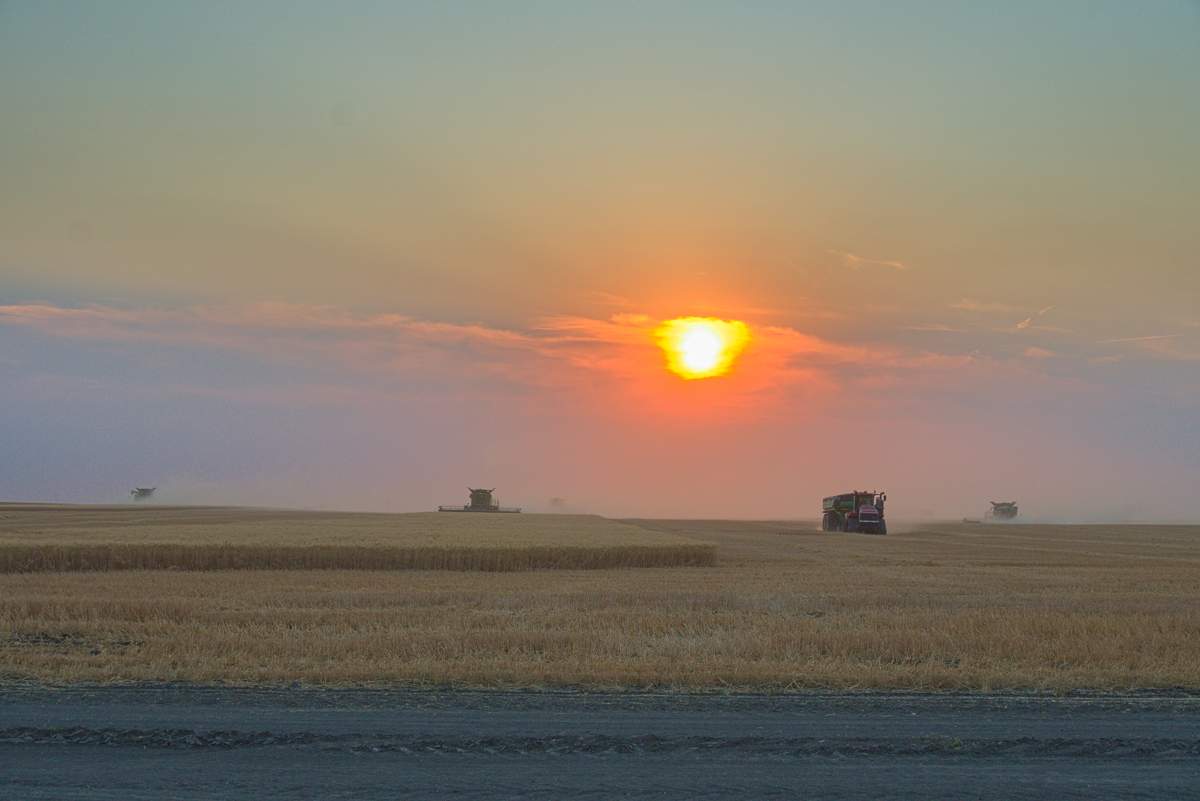 Der Sonnenuntergang machte das ganze irgendwie irrational. Das riesige Feld wurde mit einer enormen Geschwindigkeit abgeerntet.
