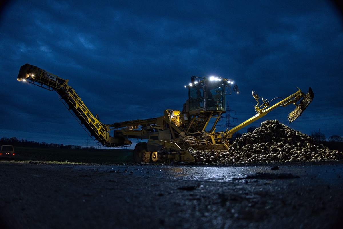 Ropa beim Rübenernte in der Nachbarschaft, Südzucker rodet im Nachbarort (bei Nacht) und Südzucker beim wieder einsäen.