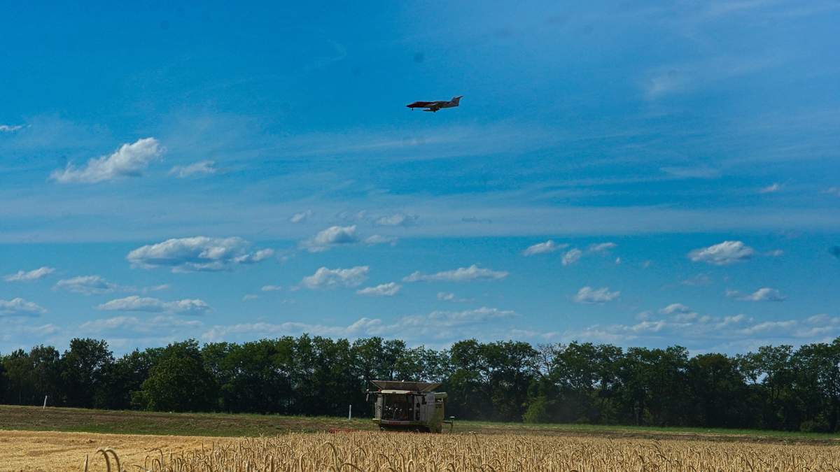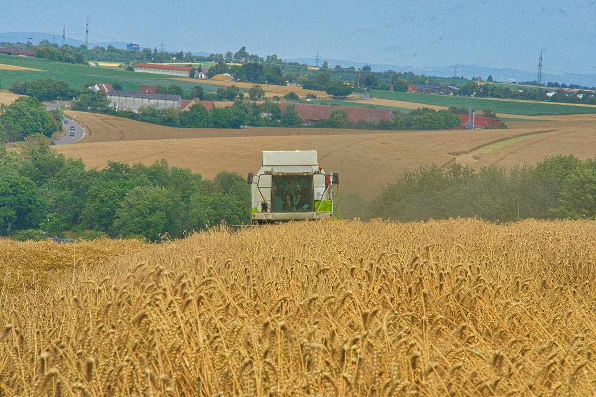 Weiter geht es an einem Hofgut mit schönen großen Feldern. Hier war ich dreimal zum Bilder machen (innerhalb von zwei Wochen), der Regen hat den Drescher immer wieder ausgebremst.