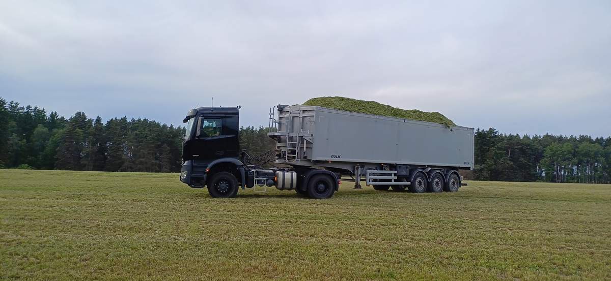 Tobi danke. Ja, da sind ordentlich Fahrzeuge am Hof. 30x 18 Tonner Drehschemmelhänger, immer zwei zusammen als Zug.